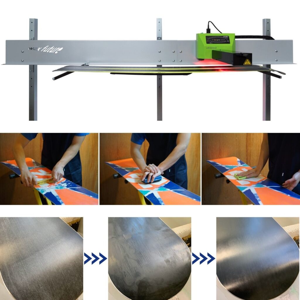 ワックスフューチャーは、エッジチューニング完了後に行います。専用の赤外線照射装置により、滑走面を内部から均一に加熱。ワックスをアイロンでは不可能なレベルまで深く、ムラなく浸透させ、驚異的な持続性と滑走性を実現します。十分に冷却した後、余分なワックスをスクレーピング、ブラッシングで丁寧に取り除き、フィニッシュクロスにて静電気等を除去します。浸透させるベースワックスは雪のコンディションに合わせて厳選しています。